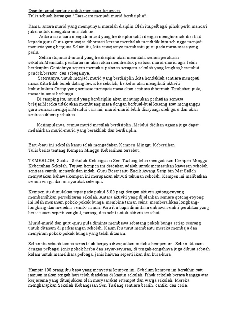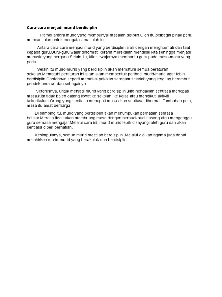 Karangan Karangan Pdf Soalan Cara Cara Menyelesaikan Masalah Disiplin Di Kalangan Murid Murid Sekolah Bincangkan Disiplin Bermaksud Peraturan Untuk Course Hero from www.coursehero.com Kami sudah merangkumnya menjadi 14 cara terbaik meningkatkan disiplin. Contoh karangan cara cara menjadi remaja berdisiplin mp3 & mp4. Kita akan mulai belajar cara menjadi reseller yang sukses dengan memilih produk yang akan dijual. Menjadi cepat kaya bisa dilakukan bukan hanya dengan berbisnis! Bagaimana cara menjadi selebgram seperti awkarin dan ria ricis banyak dapat endorse dan duit? Istri anda akan menjadi sumringah dan bergairah kembali melihat. Mirip cara menanam timun suri, cara menanam semangka inul yang selanjutnya ialah persiapan benihnya. Ketepatan waktu dalam mengerjakan tugas pun mendidik kamu menjadi orang yang disiplin.